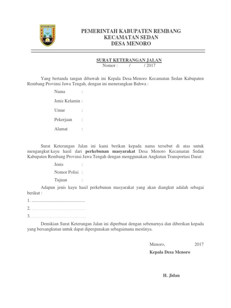 Surat keterangan jalan ini kami berikan kepada nama tersebut di atas untuk mengangkut kayu hasil dari perkebunan masyarakat desa menoro contoh surat jalan dari desa. Surat bpd kepada kepala desa tentang pemberitahuan akhir.